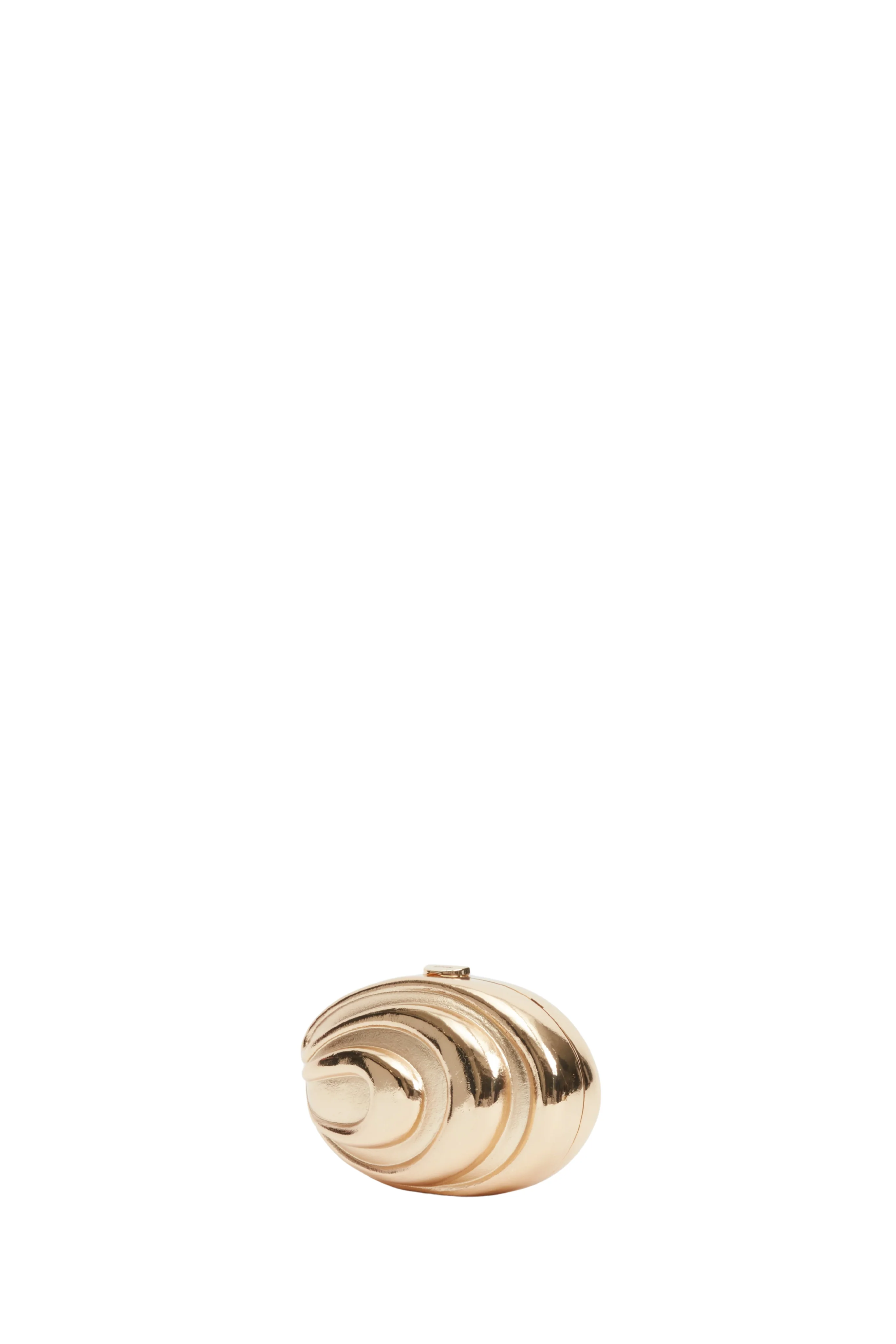 - Sleek metallic clutch with a fluid, wave-inspired sculptural design in high-shine gold metal